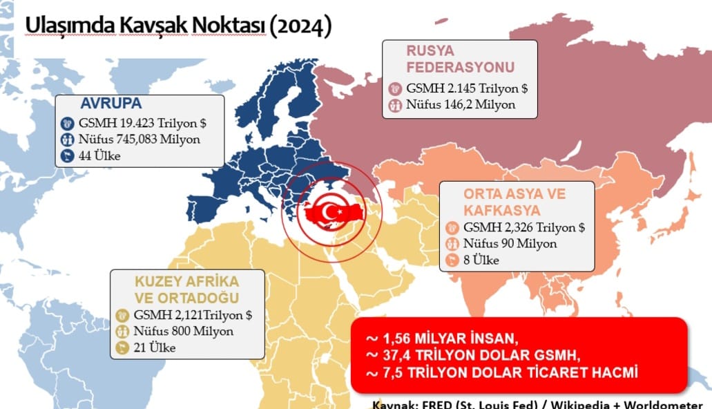 Marmaray ve Avrasya Tüneli’nin İstanbul Boğazı geçişini hızlandırarak Türkiye’yi Doğu-Batı ticaret koridorunun en stratejik noktasına yerleştirdiğini belirten Ilıcalı, Orta Koridor (Trans-Hazar) üzerinden Çin’den Avrupa’ya uzanan ticarette Türkiye’nin “transit merkez” konumuna yükseldiğini ifade etti. Ayrıca, ulaşımdaki bu hızlanmanın turizm gelirlerini ve iç turizmi de doğrudan canlandırdığını ekledi.